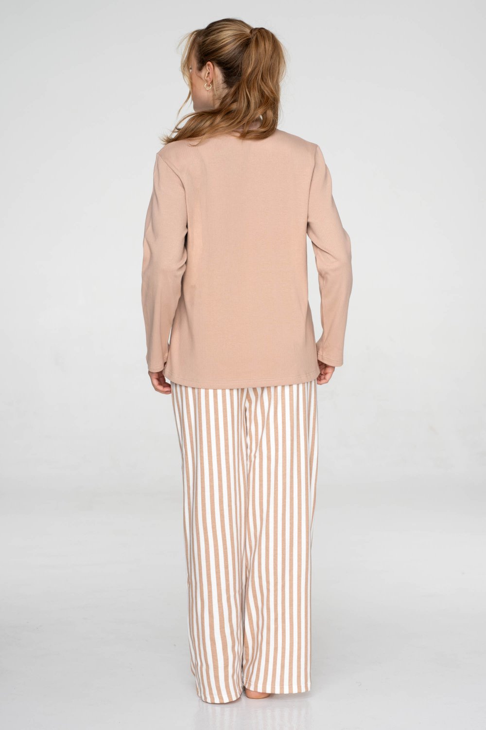 Bavlněné dvoudílné pyžamo Beige Stripe