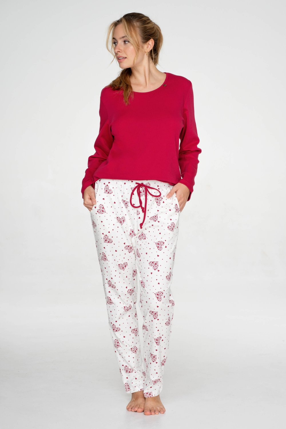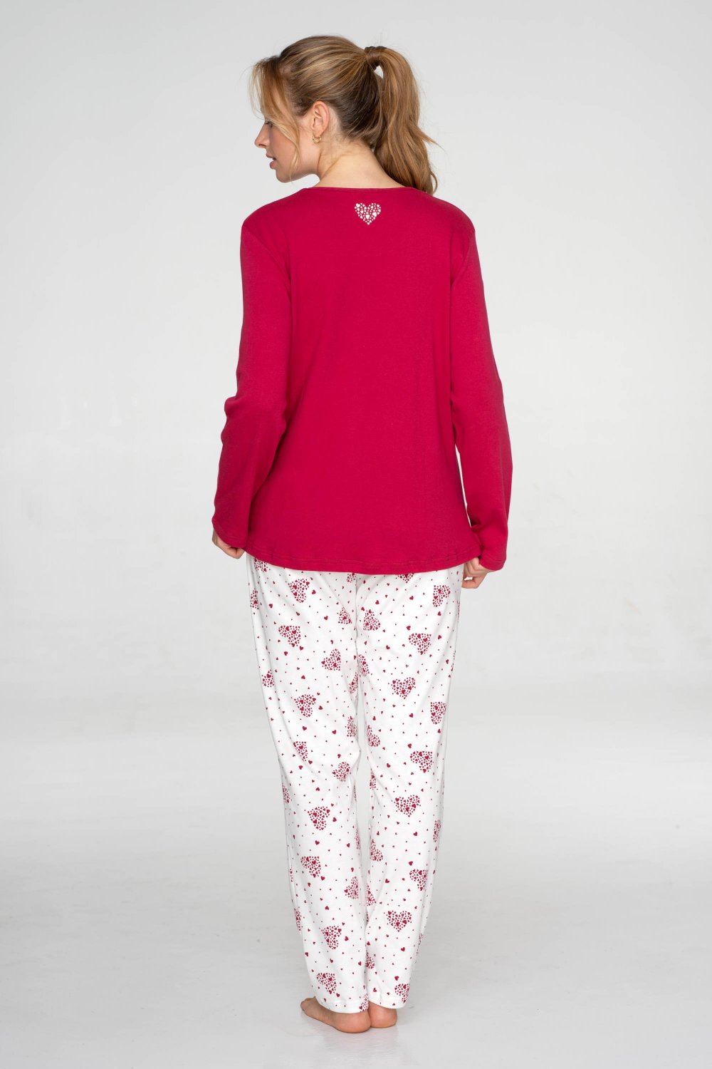 37 tmavě červené tričko a světlé kalhotky s potiskem