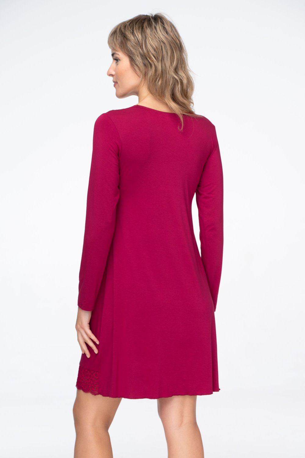 Délka nad kolena poskytuje volnost pohybu a komfort při nošení, zatímco dlouhé rukávy chrání při chladnějším počasí a dodávají modelu elegantní proporce.