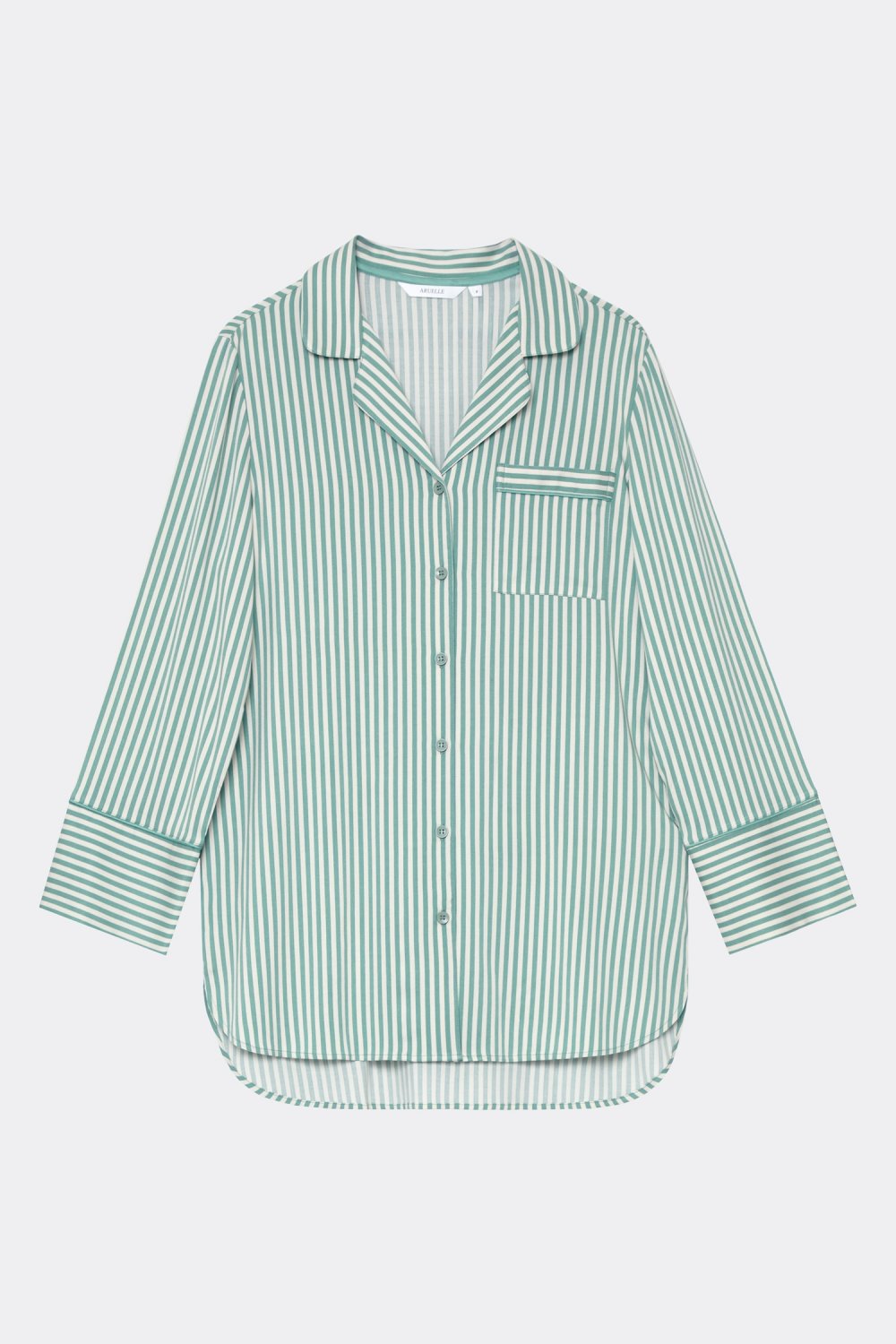 Luxusní viskózová noční košile se smetanovým pozadím a jasně zeleným pruhovaným vzorem.