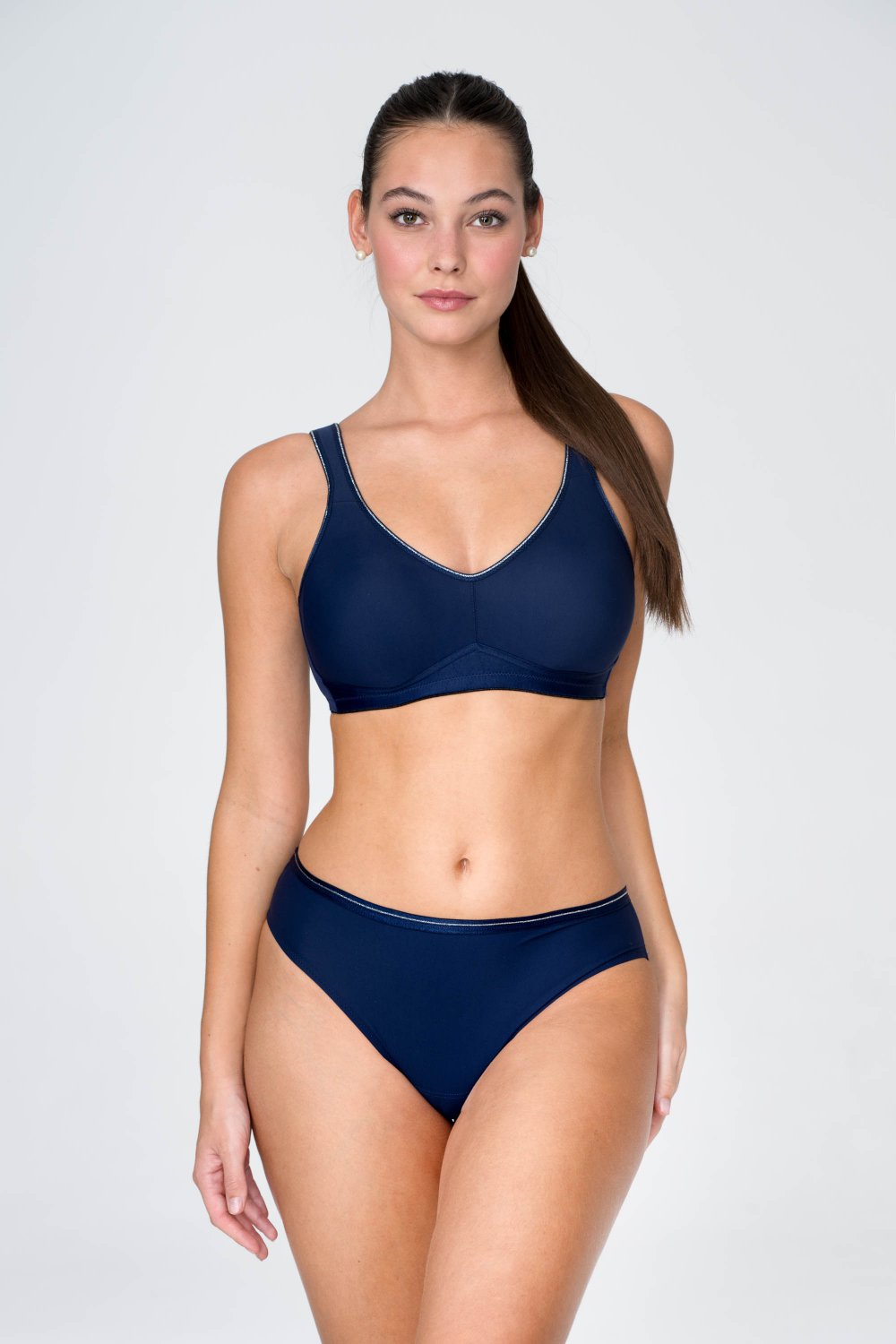 Volnočasová podprsenka z kolekce Silver Line je ušitá z moderního a pružného materiálu Scuba s jemným hladkým povrchem. Je teplem tvarovaná, aby měla vaše prsa co největší komfort. Podprsenka jednoduchého střihu bez kostic je snadná na údržbu, nemačká se, má nastavitelná ramínka a vaše prsa podrží díky příjemné gumě. Podprsenka je pohodlná a zároveň pevná díky materiálu vyšší gramáže.