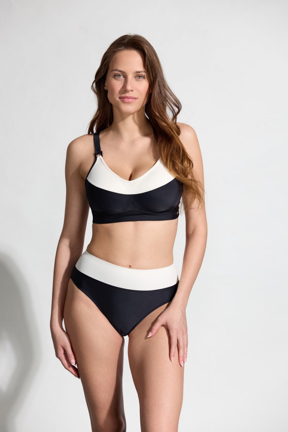 Prešitie pod prsiami a širší zadný diel zaisťujú stabilitu a pohodlie pri akejkoľvek letnej aktivite – od plávania až po aktívny odpočinok. Podprsenka je mäkká, pružná a prispôsobivá.