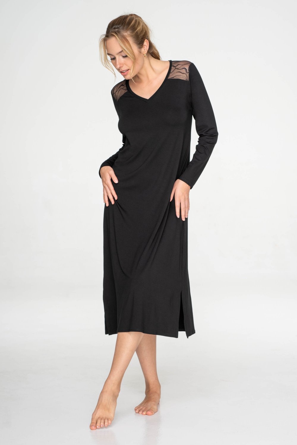Dlhá nočná košeľa Flow s čipkou