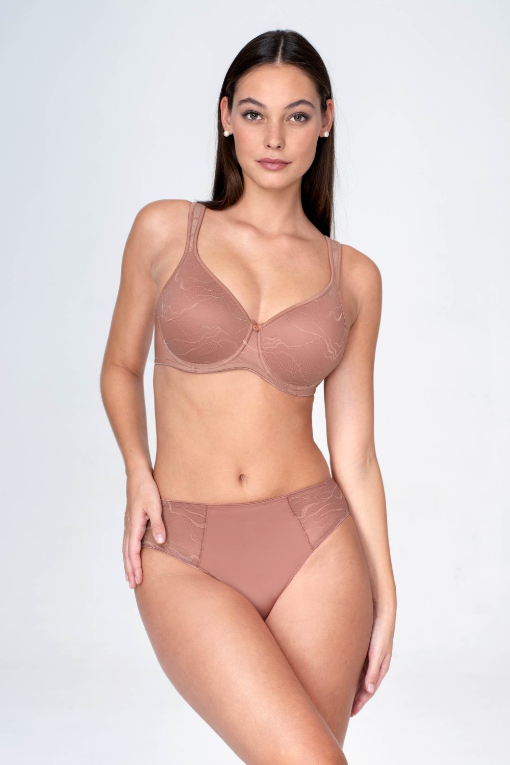 V kolekcii Flow s jemným motívom rozviatych vĺn nemôže chýbať naša najpredávanejšia podprsenka v strihu DreamBra. Tento strih je ideálny predovšetkým pre väčšie prsia. Vďaka ľahkej výstuži poprsie nezväčšuje, ale dodá im pevný okrúhly tvar. Širšie ramienka sa nezarezávajú ani po celodennom nosení, vysoký stred drží prsia na mieste. Po obvode je podprsenka pevná, ale pružná.