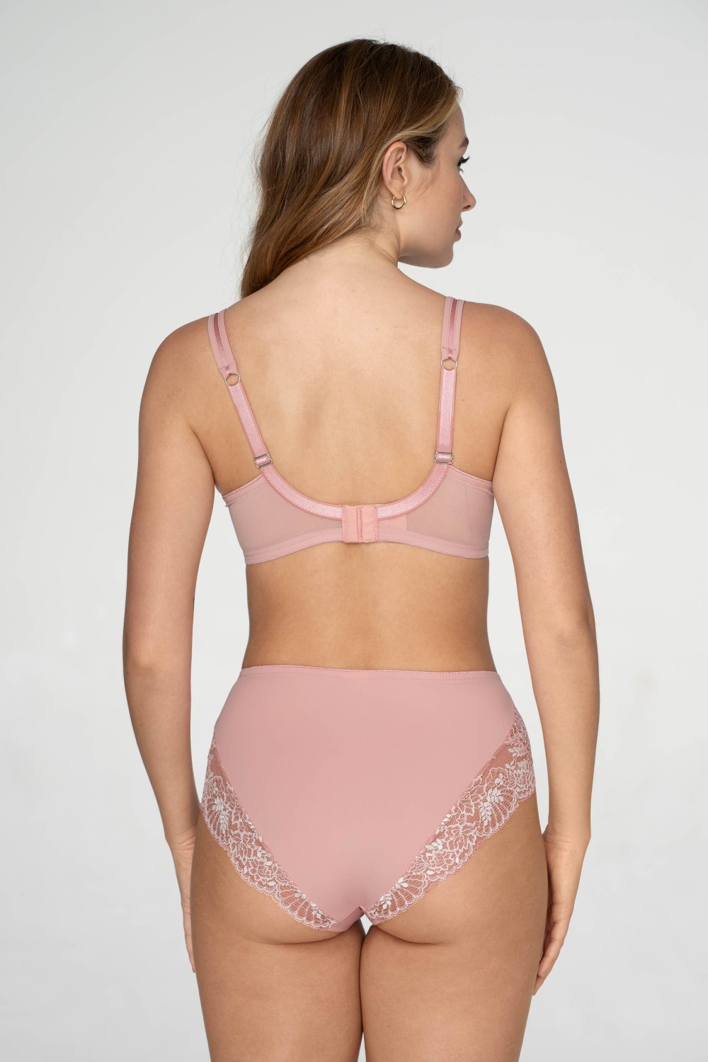 Čipková kolekcia Rosewood je inšpirovaná pôvabom a vzácnosťou palisandra – ružového stromu, kde sa jemnosť kvetov (staroružová varianta) prirodzene prepája s hĺbkou dreva (hnedý variant).