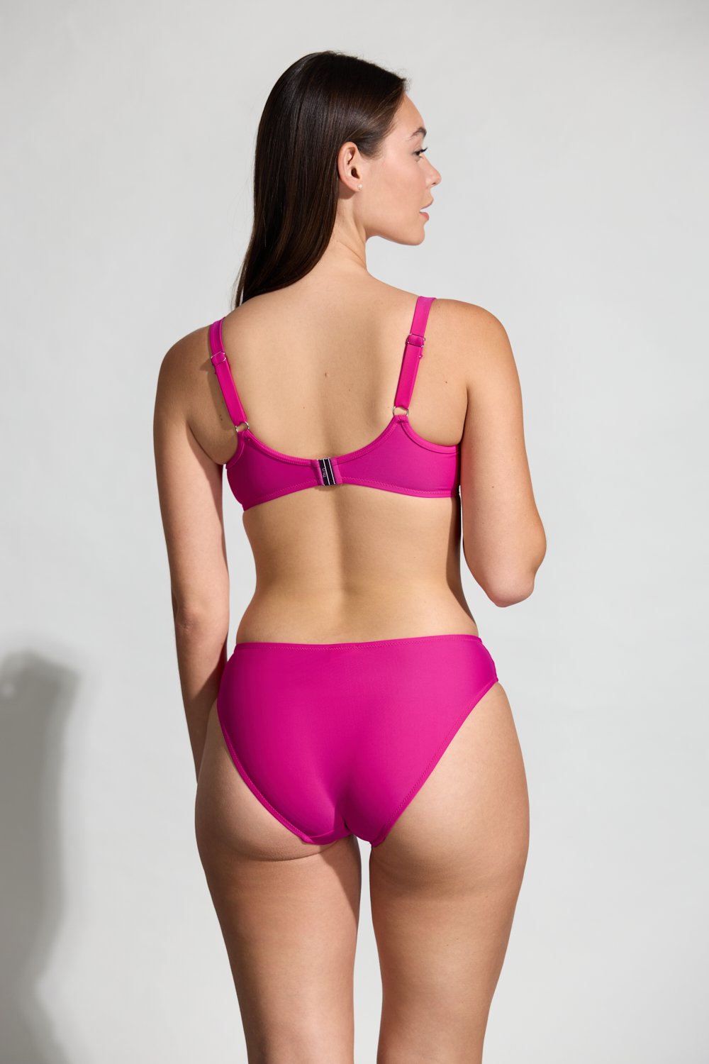 Dvojdielne plavky so šitou riasenou podprsenkou patria medzi veľmi obľúbené strihy. Podprsenka je spevnená kosticou a má podložený spodný diel, vďaka čomu poskytuje spoľahlivú oporu a zároveň zachováva prirodzený tvar poprsia.