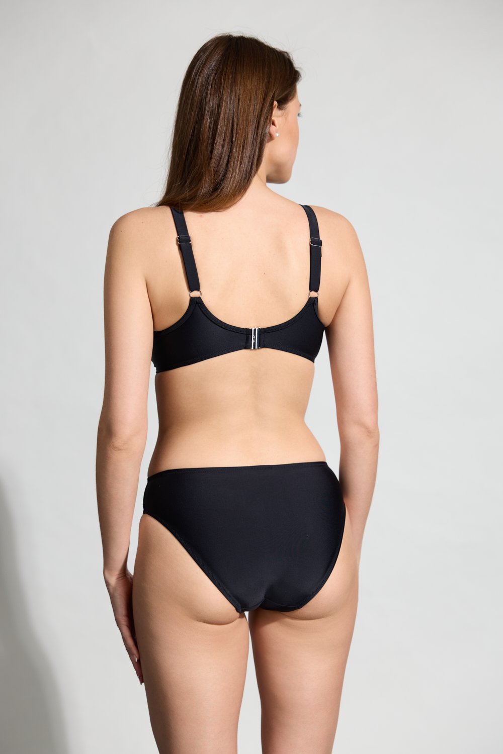 Dvojdielne plavky so šitou riasenou podprsenkou patria medzi veľmi obľúbené strihy. Podprsenka je spevnená kosticou a má podložený spodný diel, vďaka čomu poskytuje spoľahlivú oporu a zároveň zachováva prirodzený tvar poprsia.